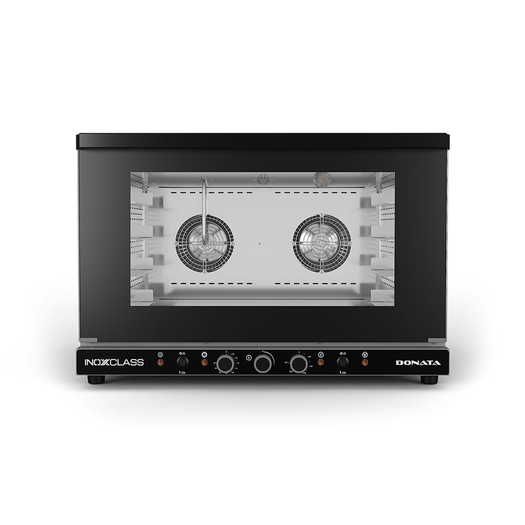 INOXCLASS D04EFD is a professional electric convection oven designed for small and medium-sized bakeries and restaurant kitchens. The four-plate capacity (60×40 cm) and the mechanical control panel ensure fast, even cooking of dishes and operational reliability.
