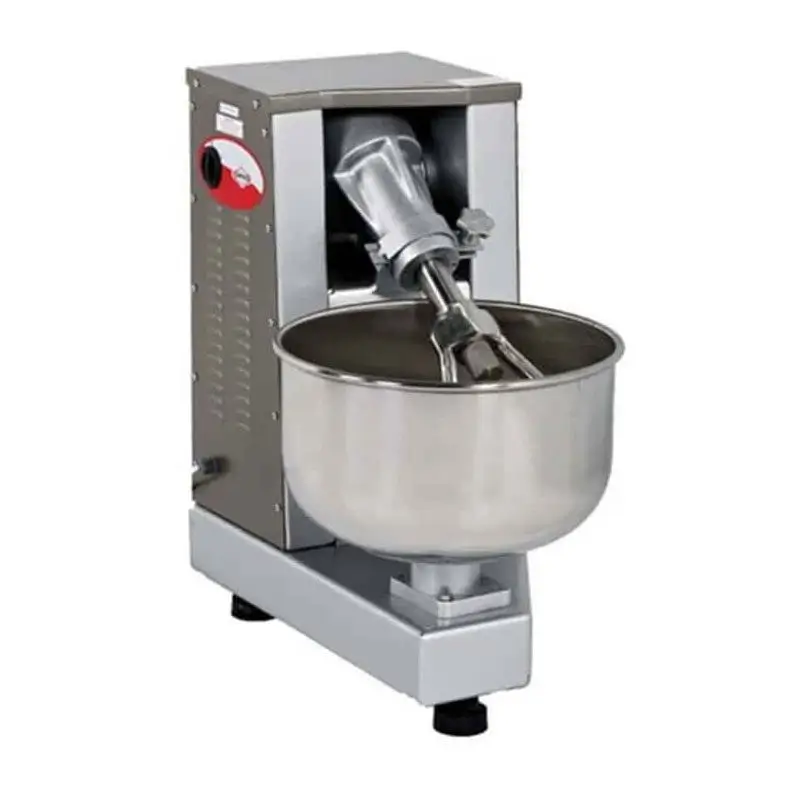 The machine operates on a three-phase 380-volt network and is equipped with a 0.55 kW (0.75 hp) motor, which ensures stable cyclic operation for various types of dough. Its dimensions of 90x80x70 cm and weight of 90 kg create a high stability and durable structure.