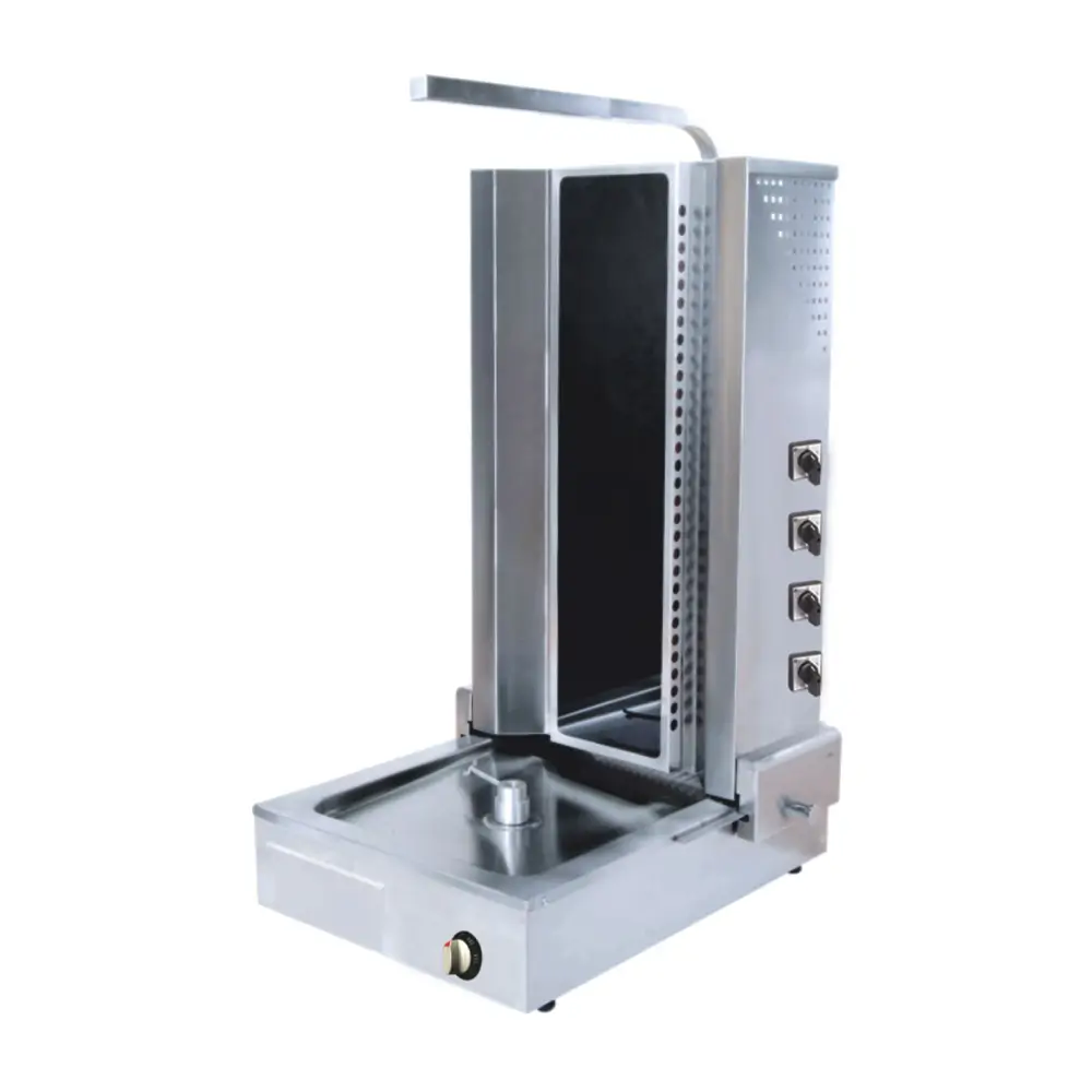 The rotating lower motor drives the skewer movement steadily and smoothly, which helps to evenly roast the layers of meat. Four electric burners, which are individually adjustable, give the operator maximum control over the roasting process.