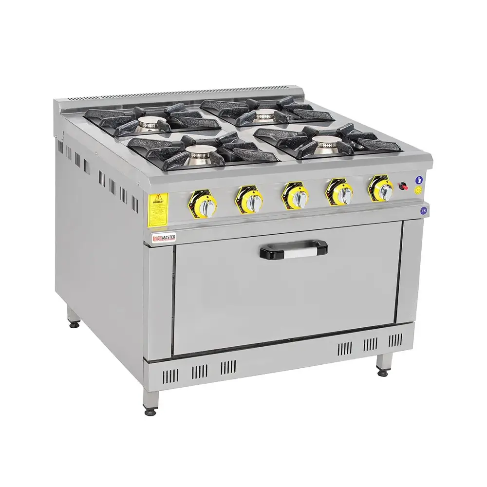This four-burner gas stove with oven from AKGAZ embodies industrial power and fundamental durability. Its massive 125 kg construction, made of premium 304 grade stainless steel, is designed to become the unshakeable and most reliable work center of your kitchen.