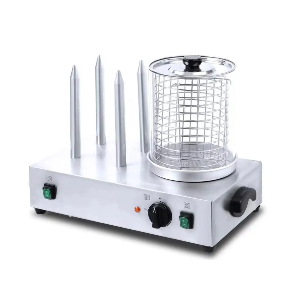 - Конструкция: Пароварка для сосисок + подогреватель для булочек