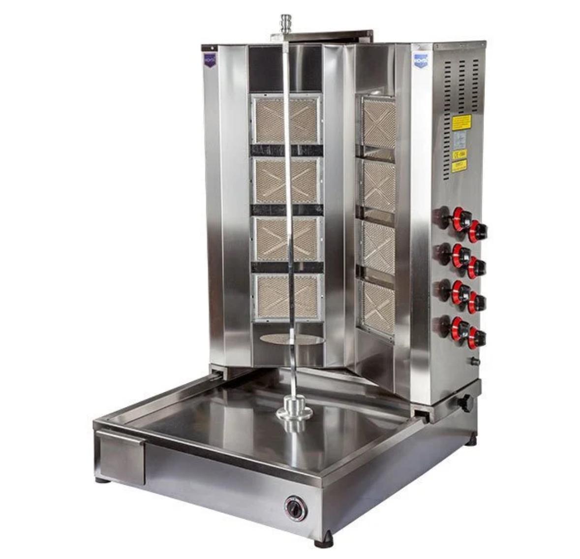 Газовый аппарат для шаурмы REMTA с 8 горелками — это высокопроизводительный профессиональный аппарат, предназначенный для приготовления большого количества мяса. Четыре пары (8 шт.) свечей и нижний роторный двигатель обеспечивают равномерную и идеальную прожарку мясной массы и удобство эксплуатации.
