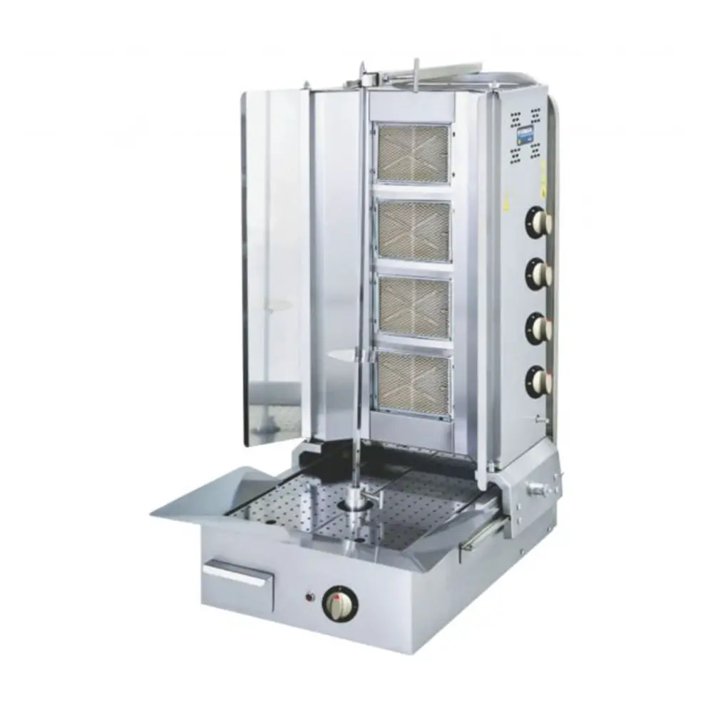Аппарат для шаурмы GÖRKEM-4 с нижним двигателем предназначен для коммерческих кухонь, где важны точность вращения и стабильность пламени. Вращающийся нижний двигатель обеспечивает равномерно прожаренную поверхность мяса, что дает визуально и вкусово одинаковые порции.