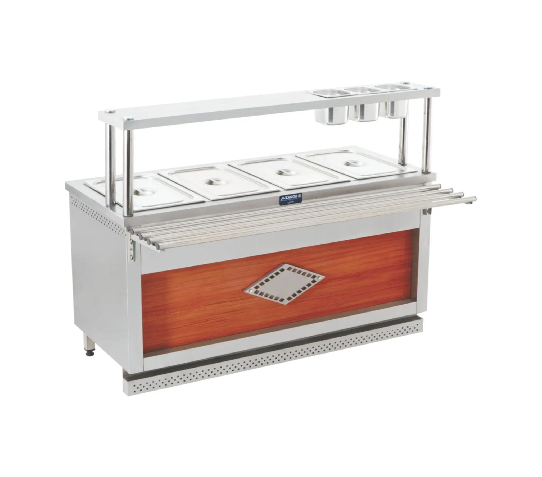 Устройство представляет собой полностью оборудованную станцию типа «всё в одном», объединяющую высокоёмкий мармит и все необходимые элементы для сервировки.