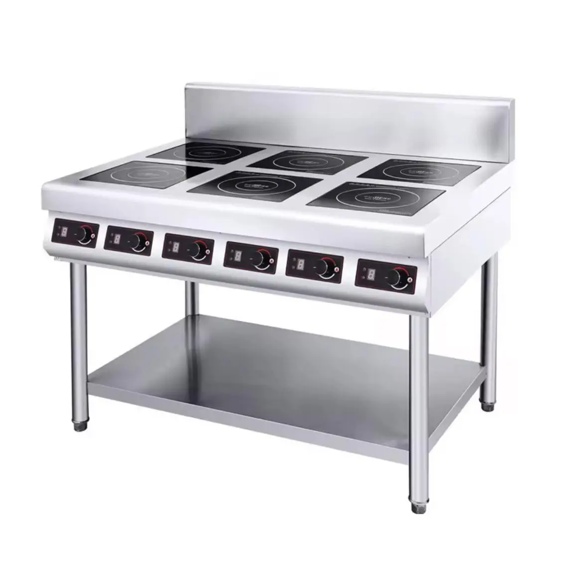 IND-6 — это напольная индукционная плита промышленного класса с шестью зонами нагрева, представляющая собой вершину современных кулинарных технологий для кухонь с высокой производительностью. Эта полноценная станция сочетает в себе огромную мощность (21 кВт), гибкость шести независимых зон и практичный напольный дизайн, что делает ее центральным элементом любой передовой, полностью электрифицированной профессиональной кухни.