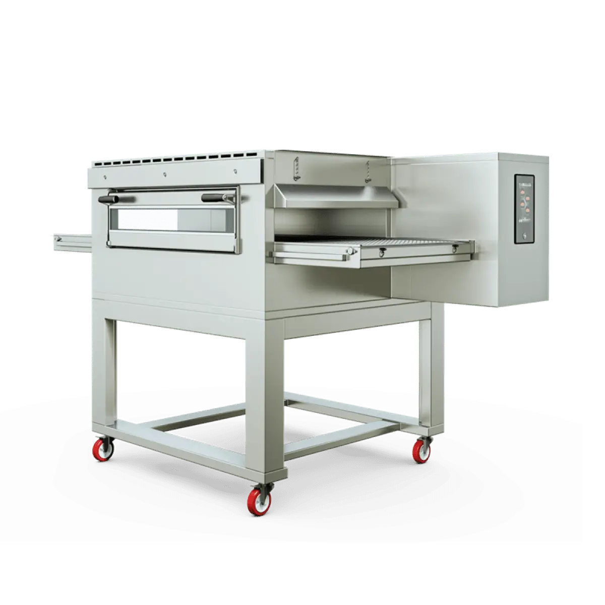 - Регулируемое время выпечки: Контроль скорости конвейера напрямую регулирует время выпечки. Эта функция делает печь универсальной для приготовления пиццы различной толщины, сэндвичей, лахмаджуна и других продуктов.