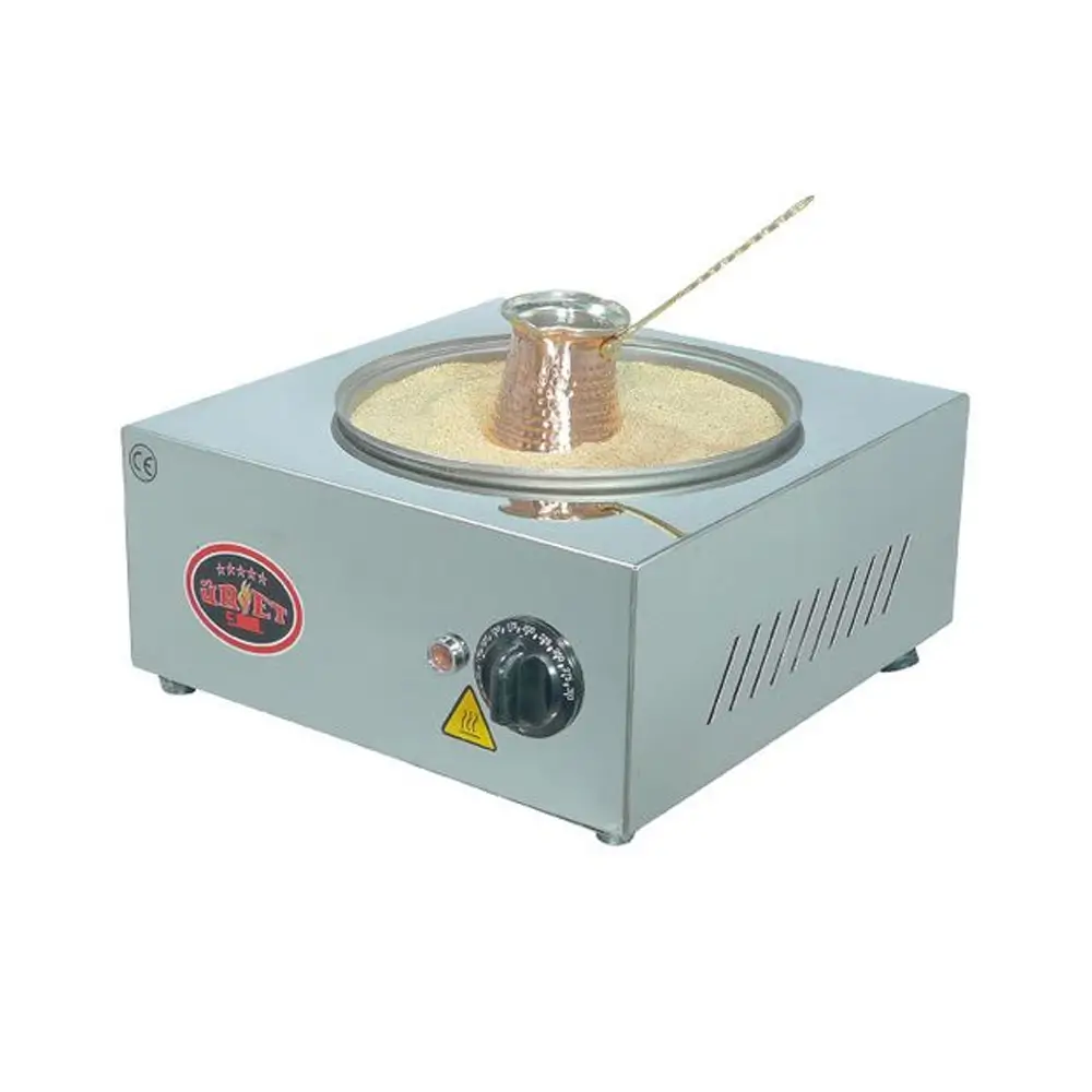 Эта профессиональная электрическая кофемашина URET предназначена для приготовления настоящего турецкого кофе на горячем песке. Классический дизайн из нержавеющей стали (серебро) и компактные размеры делают её идеальным решением для кафе, ресторанов и заведений национальной кухни.