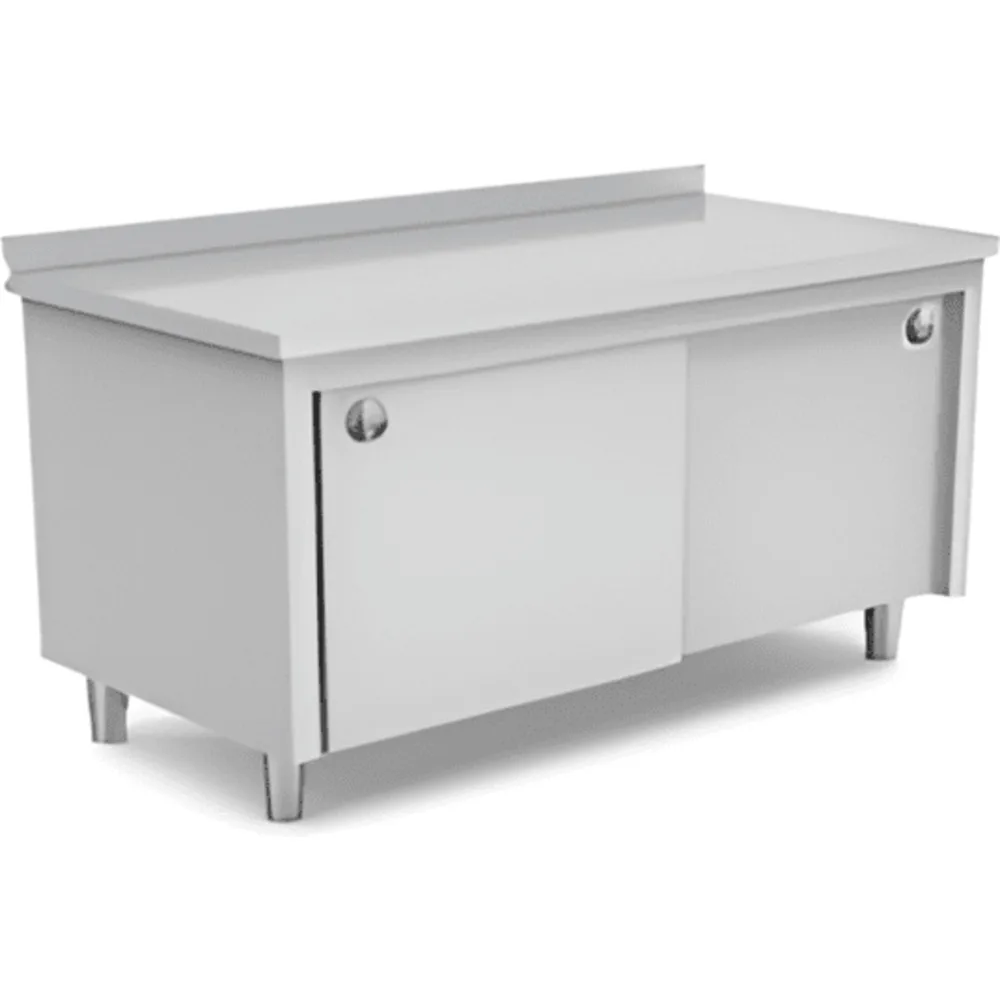 Стол из нержавеющей стали с тумбой.
